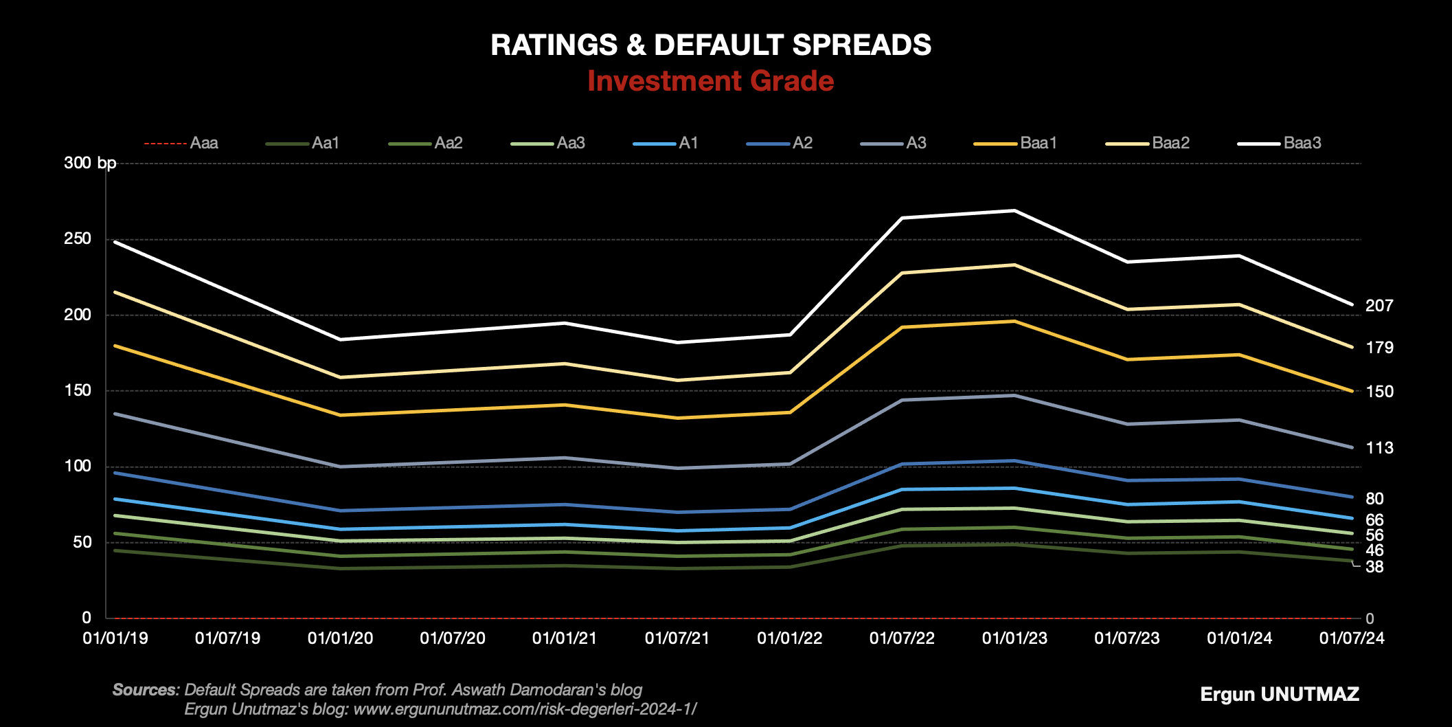 Profesör Aswath Damodaran, Ocak ve Temmuz aylarında olmak üzere risk verilerini yılda iki kere paylaşmaktadır. Küresel ölçekte hisse ve ülke riskleri yanında ülke kredi notları, temerrüt riski farkları ve şirketlerin faiz karşılama oranları gibi veriler biz değerleme yapanlar için son derece önemlidir. Bu bağlamda ben de bu sayfada, uzun bir süredir, kendi notlarım ve düşüncelerimle birlikte, Türkiye, Almanya ve ABD için bu değerleri Türkçe olarak yayınlıyorum.