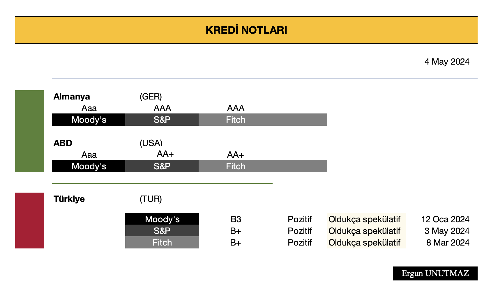 Hazırlayan: Kredi derecelendirme kuruluşları verileriyle Ergun UNUTMAZ