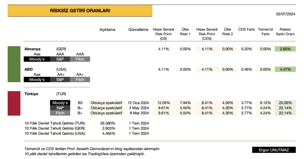 Hazırlayan: A.Damodaran’ın verileri esas alınarak Ergun UNUTMAZ