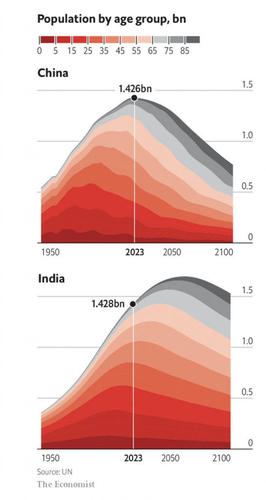 4 – Çin zirveye ulaştı mı?: Çin’in nüfusu, Hindistan tarafından ve projeksiyonlara göre 2023 yılının Nisan ayında, yaklaşık 1,43 milyar kişi seviyesinde geride bırakılacaktır.