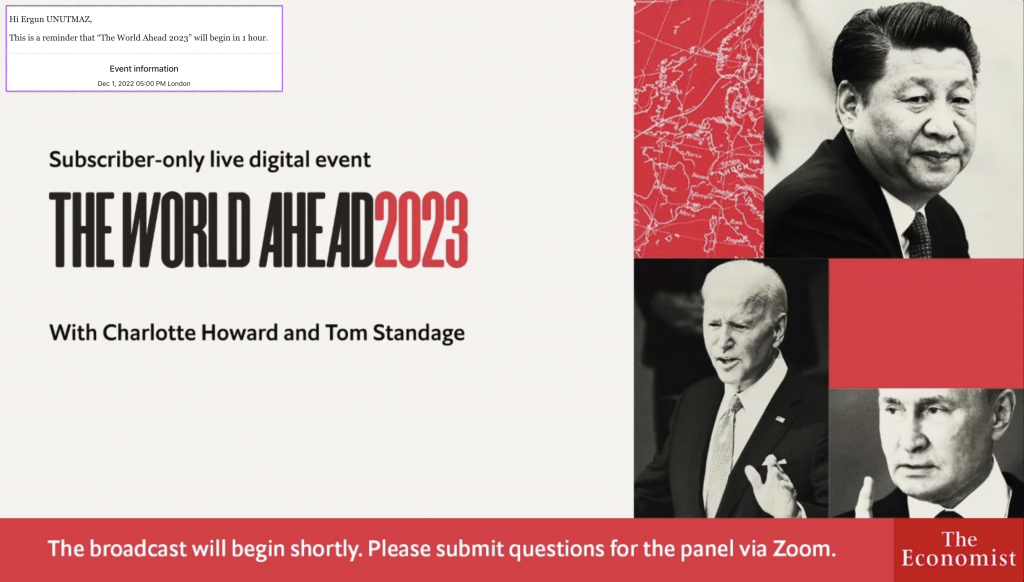 Uzun bir süredir takip ettiğim ve son üç senedir blog yazılarımda yorumlarımı yayımladığım The Economist dergisinin özel sayısı The World Ahead 2023, çevirim içi olarak 14 Kasım tarihinde okuyucularla buluştu. Dergi yayımlanır yayımlanmaz, The Economist dergisinin yardımcı editörü ve bu özel sayının editörü olan Tom Standage‘ın “Önümüzdeki yıl için izlenecek 10 eğilim” başlıklı yazısını da hemen yorumlamak istedim, ancak sonradan düzenlenecek olan özel toplantıdaki soru cevap ve yorum kısmını kaçırmamak için bu yazıyı ertelemiştim. Geçen günlerde gerçekleştirilen bu toplantıdan notlarımı da içeren yazım yine üç bölüm şeklinde olacak:
